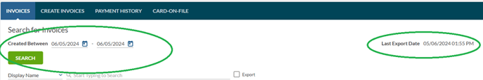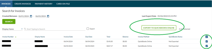 In the “Search for Invoices” section, adjust the date range for the Invoices you want to export to QuickBooks Online, and hit the Search button.